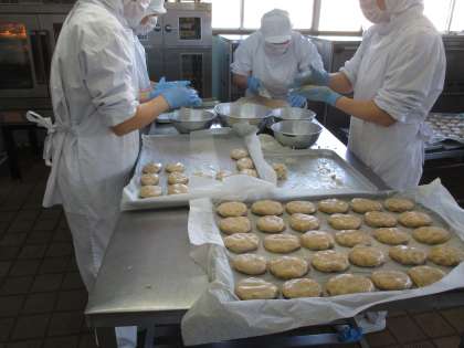 蒸してからつぶし、小判型に丸めてオーブンで焼きます。