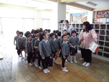 2月15日、聖徳幼稚園の年長さんたちが、学校見学に来てくれました。