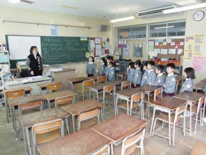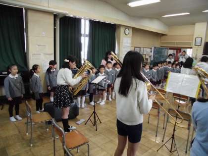 まずは、学校内を見学しました。音楽室では、音楽委員の子が練習最中で、1曲演奏してくれました。