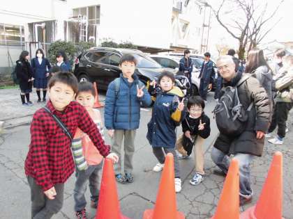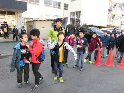 たくさんのごみを拾いながら、ゴールの椚田中学校に到着しました。