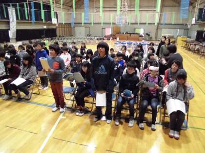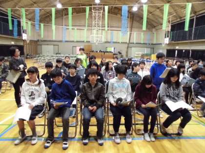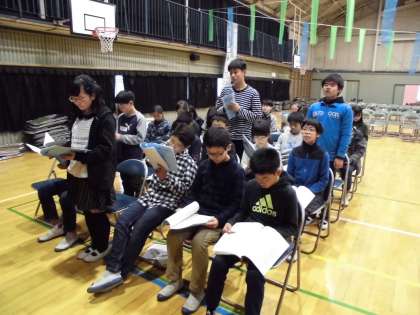 6年生が体育館で、卒業式の練習をしていました。呼びかけも立派です。