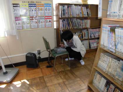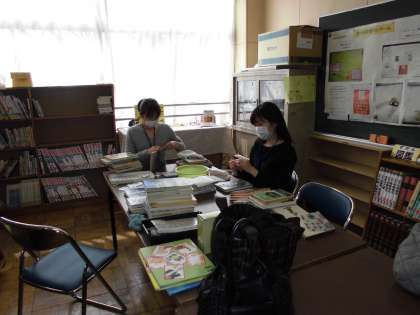 第2図書室をのぞくと、今日も図書ボランティアのお母さん方が、ラベルの補習をしてくださっていました。本当にありがとうございます。