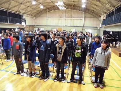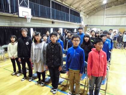 呼びかけの中で歌う、合唱曲の練習最中でした。5・6年生とも、歌声が素晴らしかったです。