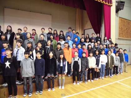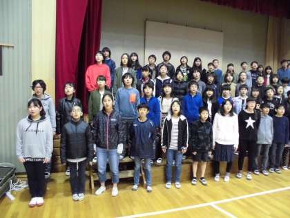 6年生は、ひな壇に移動して歌っています。