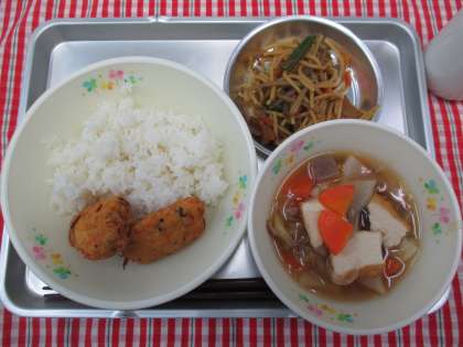 ごはん とうふのまさご揚げ かわりきんぴら のっペい汁 牛乳