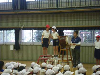 体育館の中は、狭く声も響くので迫力がありました。本番では、校庭の広さに負けず、大迫力の応援合戦が期待できそうです。【副校長】