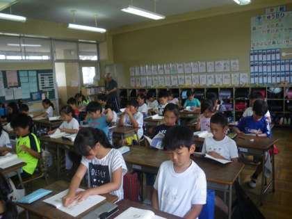 教科書の4コマ漫画を教材に、話がかみ合っていない理由を考え、どうすれば話が通じるか考えて発表しました。