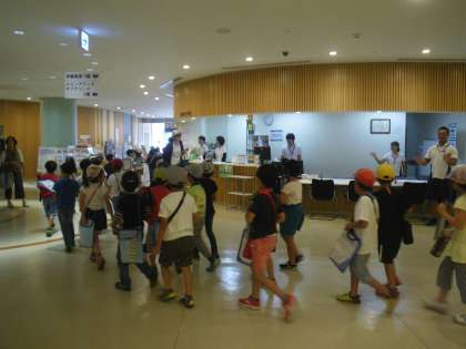 今日の校外学習はエスフォルタアリーナです。実は、私はおおるり展でしか入ったことがありません。大きな体育館があるのは知っていましたが、中は見たことがなかったので楽しみでした。