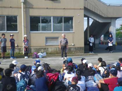 出発式です。楽しい3日間にしてきてください。【副校長】