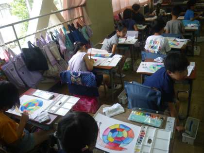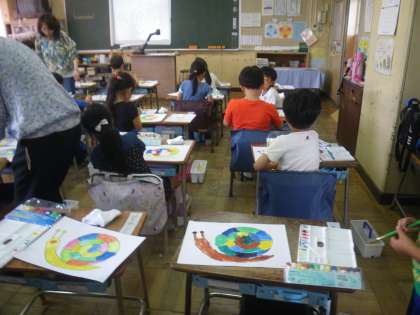 1年生が水彩絵の具を使っていました。