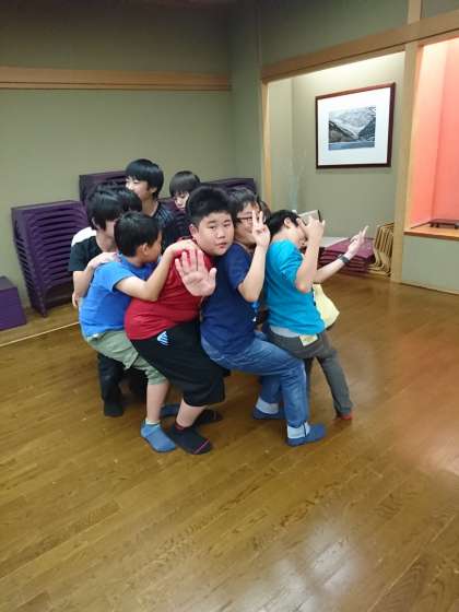 輪を作って人間椅子を素早く作ります バランスよりもチームワークかな