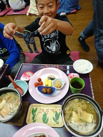 ご飯をお代わりする子が目立ちます ハイキング中のハンガーノックの心配はありませんね!