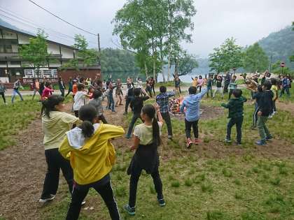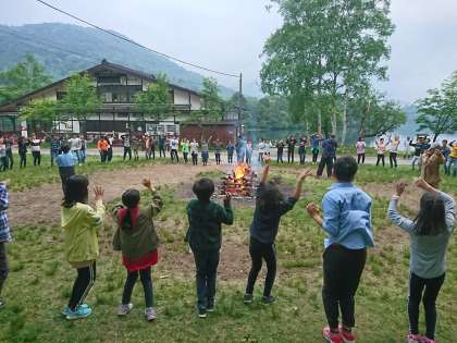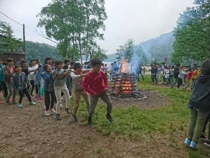 おもいっきりキャンプファイヤーを楽しみました。雨の心配があり、明るい中でのキャンプファイヤーでしたが、係の子供たちが中心となって踊り、歌い、笑い、語り合い、最高の一時を作り出しました。【校長】