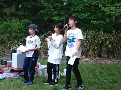 おもいっきりキャンプファイヤーを楽しみました。雨の心配があり、明るい中でのキャンプファイヤーでしたが、係の子供たちが中心となって踊り、歌い、笑い、語り合い、最高の一時を作り出しました。