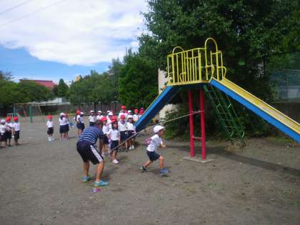 長縄跳びの練習です。リズムに合わせて長縄跳びに挑戦しています。まだ苦手な子がたくさんいますが、練習であっという間に上手になります。熱中症に気を付けて練習しましょう。【副校長】