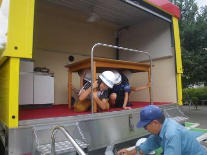 いままで経験したことのないほどの揺れに驚いていた児童もいました。ゆとりの表情の子どももいましたが、本当の地震は起震車とは違います。