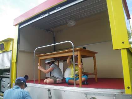 震度4〜震度7までの揺れを体験し、揺れの大きさや命を守る方法を身をもって感じることができました。