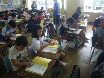 しおりを読み合せて、めあての確認や注意事項を読んで確認していました。