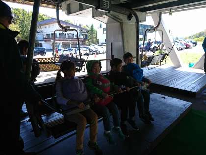 2本乗り継いで、山頂までの空中散歩です それにしても寒い【副校長】