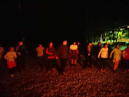 歌って踊って楽しみました 興奮して火に近づき過ぎないか気になりましたが、大丈夫 これからお風呂に入って就寝