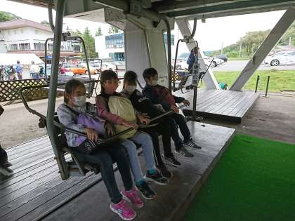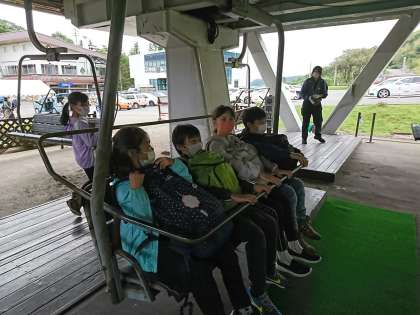 残念ながら、八ヶ岳や富士山は見えませんでしたが、子供たちはリフトに大興奮!クラス写真を撮ったらハイキングです【副校長】