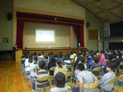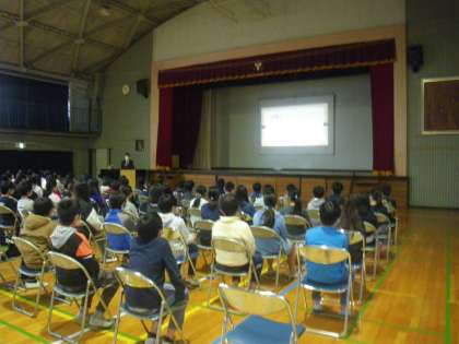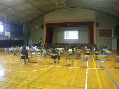 こちらは全校の保護者の参観ができましたので、多くの保護者の方に見ていただけたのではないでしょうか。どうしても、プレゼンテーションまでの距離が遠く、スライドはよく見えなかったかもしれませんが、先生の話はよく聞こえたのではないかと思います。