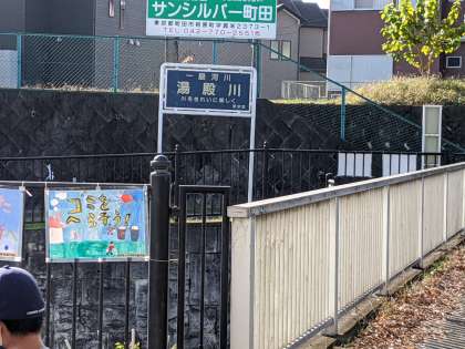 街中を歩いて行って、山王坂の下のから、湯殿川に着きました。