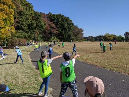相手がとっさに分かるように、クラスごとにビブス(ゼッケン)で色分けしてます。