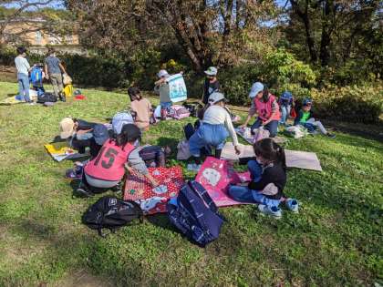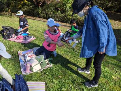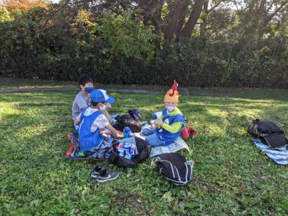 担任の先生から「シュッシュ」してもらって、思い思いのグループで食べますよ〜