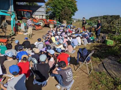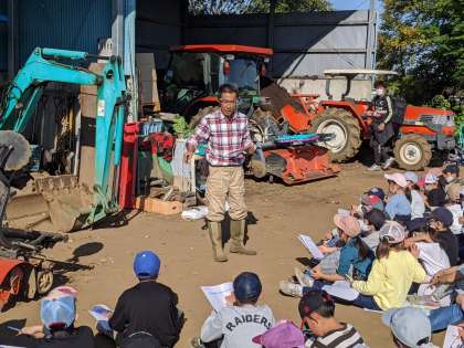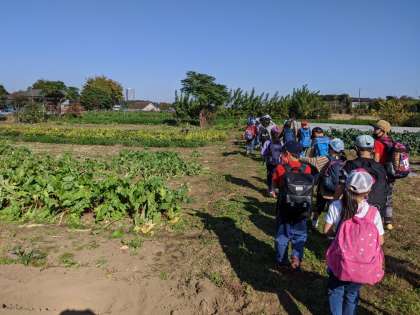 中西ファームに到着しました。今日は遠足ですが、ここからは、社会科の学習です。