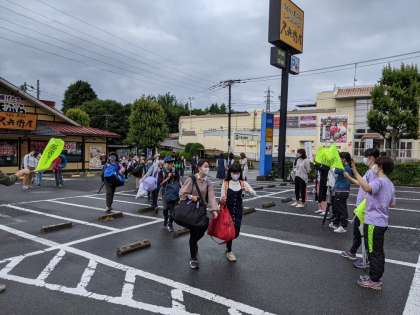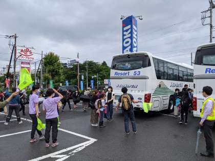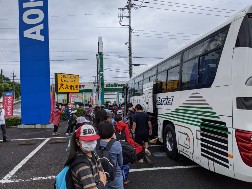 出発式を終えて、荷物を持ってバスのところに来ました。