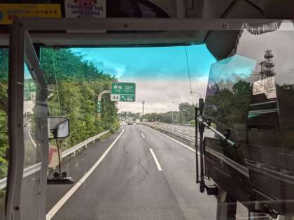 写真のとおり、わりと空いていて、ガイドさんの話では、学校からトイレ休憩の場所の菖蒲パーキングまで1時間ぐらいだろう、とのことでした。