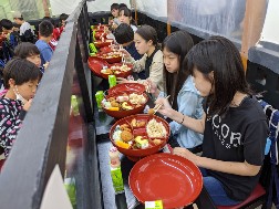 お椀の大きさに圧倒されながらも、多分今朝は早い食事だったこともあり、子供たちはきっとお腹を空かせています。