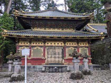 陽明門の手前に鉄の灯籠があります。この灯籠もたいへん珍しいもので、腐食も進んではいますが、まだまだしっかりと立っています。