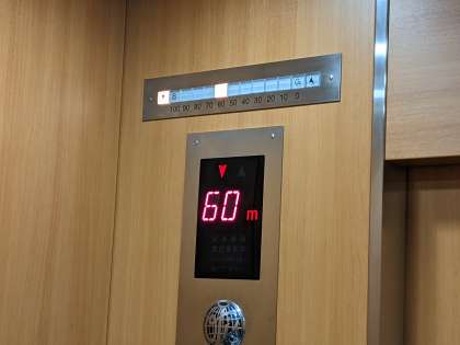 といっても、観瀑台はエレベーターで100m下がったところにあります。