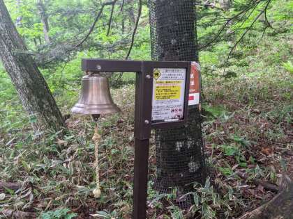 3枚目の写真は、熊よけの鐘です。ハイキングの途中に何箇所かありましたが、通過するときに鐘を鳴らして、万が一にも熊が近寄ってこないようにするためのものです。