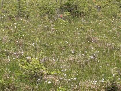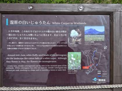 看板を見ると、「湿原の白いじゅうたん」とあります。看板の他のところも読んでみてください。