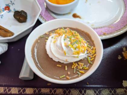 手作りのチョコレートムースがきました!カップに触ると冷え冷えですよ。