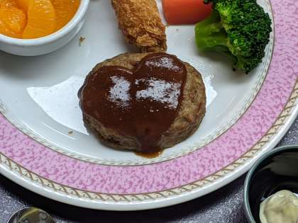ハンバーグにかかっているデミグラスソースがハート型になっています。