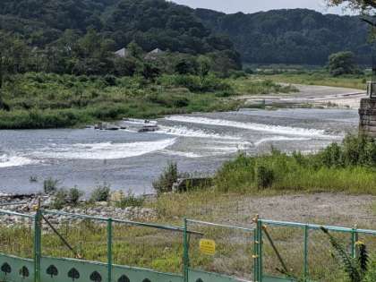 身近な湯殿川と比べても、川幅も広く、大きい川であることが分かりますね。川の流れの音もよく聞こえます。