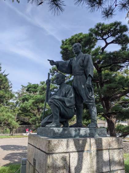 まずは、玉川兄弟の銅像の前に集まります。