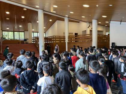 宿舎の方に、そして、自然の家に、そして姫木平の素晴らしい環境に感謝して、閉校式です。