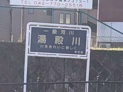 椚田遺跡公園の脇を通り、山王坂を下り、湯殿川に着きました。
