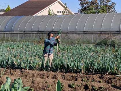 ちなみに、このネギは元々、一番低いところに植えられていたそうですが、成長するにつれて、その脇から土をかぶせていきました。