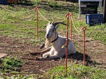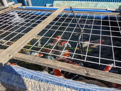 来たときに出迎えてくれたヤギのほかにも、たくさんの鯉や、元気よく鳴いているニワトリなどもいました。
