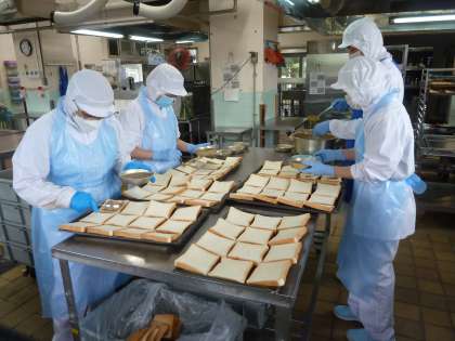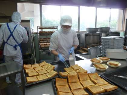 セサミトーストは給食では大人気を誇るメニューです。香ばしく炒った白ごまをフードプロセッサーにかけてバター、さとうと合わせて食パンに塗って焼きます。今日も朝や中休みに廊下をとおった児童のみなさんから「セサミトースト、楽しみにしているよ!」「早く給食の時間にならないかなぁ。」とたくさん声をかけられました。ほとんど残さず食べてくれて給食室もとても嬉しく思いました。