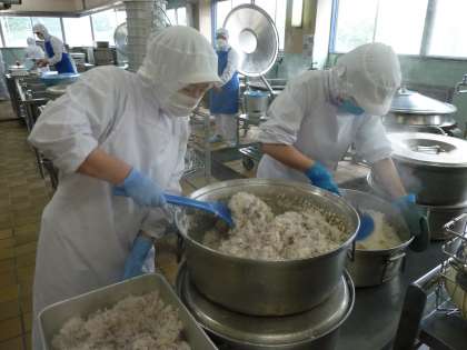 梅雨に入りました。漢字で梅の字があてられていますが、これは梅の実が熟す季節の雨からその名がついたと言われています。今日は梅雨にちなんで、梅干しを使った給食でした。梅干しの種をとって刻み、ごはんに炊き込みました。梅干しの酸味には体の疲れをとってくれたり、食欲を増進したりする働きがあります。また、殺菌作用もあり、この時期のおにぎりの具やお弁当には欠かせないものです。