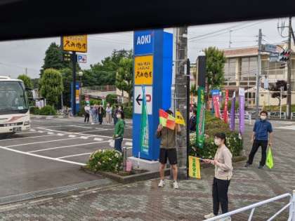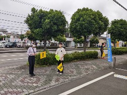 また、そこからバスが出発するために、先生たちが道路に出て車を停めさせていただいています。