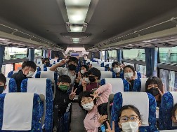 トイレ休憩も終わり、また出発しますが、その前に他のバスにもお邪魔して、中の写真を撮りました。