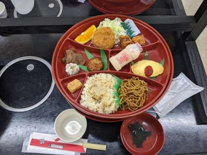 中を見ると、日光名物の湯葉の入ったご飯とたくさんのおかず、デザートもあります。